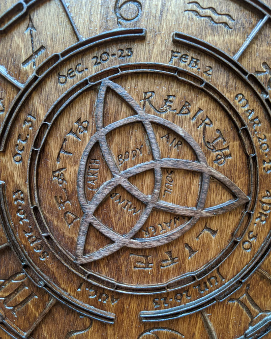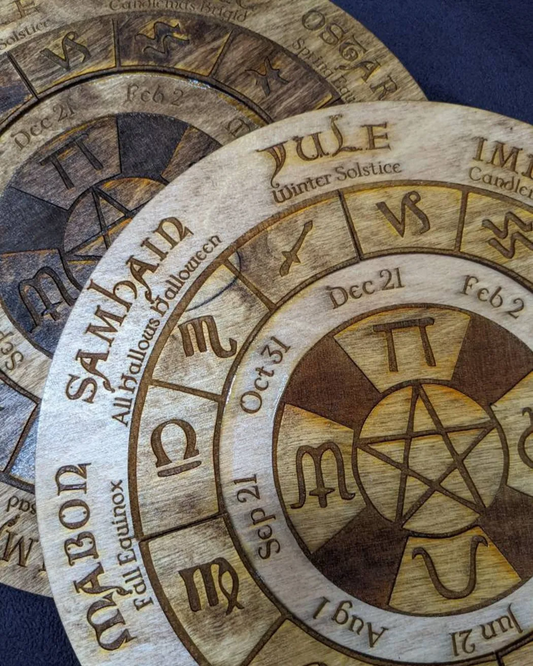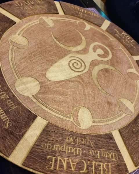 Wooden laser cut Goddess Sabbat wheel of the year calendar